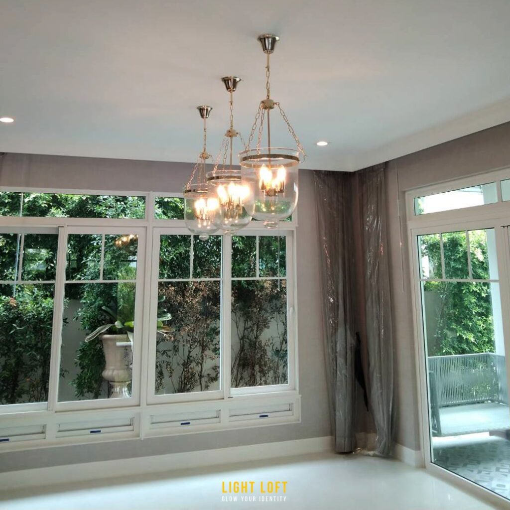 ได้ดูแลงานติดตั้งโคมไฟแขวนสวยๆให้ ประกอบด้วยโลหะและแก้วตกแต่งด้วยสายโซ่เพิ่มความแปลกตาและสวยงาม ขอขอบคุณมากครับ🙏😊